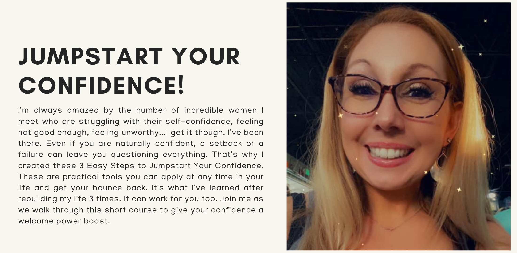The 3 Steps to Jumpstart Your Confidence Course is delivered one lesson at a time over the course of 3 days. You can soak them all up in the same week, or sit with each one as you allow the information to help reshape your thinking and your self-image. There's a video and an activity for each lesson, and a special BONUS section to help you harness that accountability, which is so important for your success.